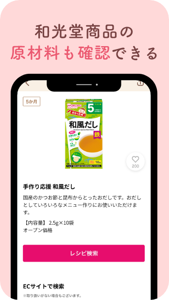 • 和光堂商(shāng)品を使用(yòng)したレシピを検索できる