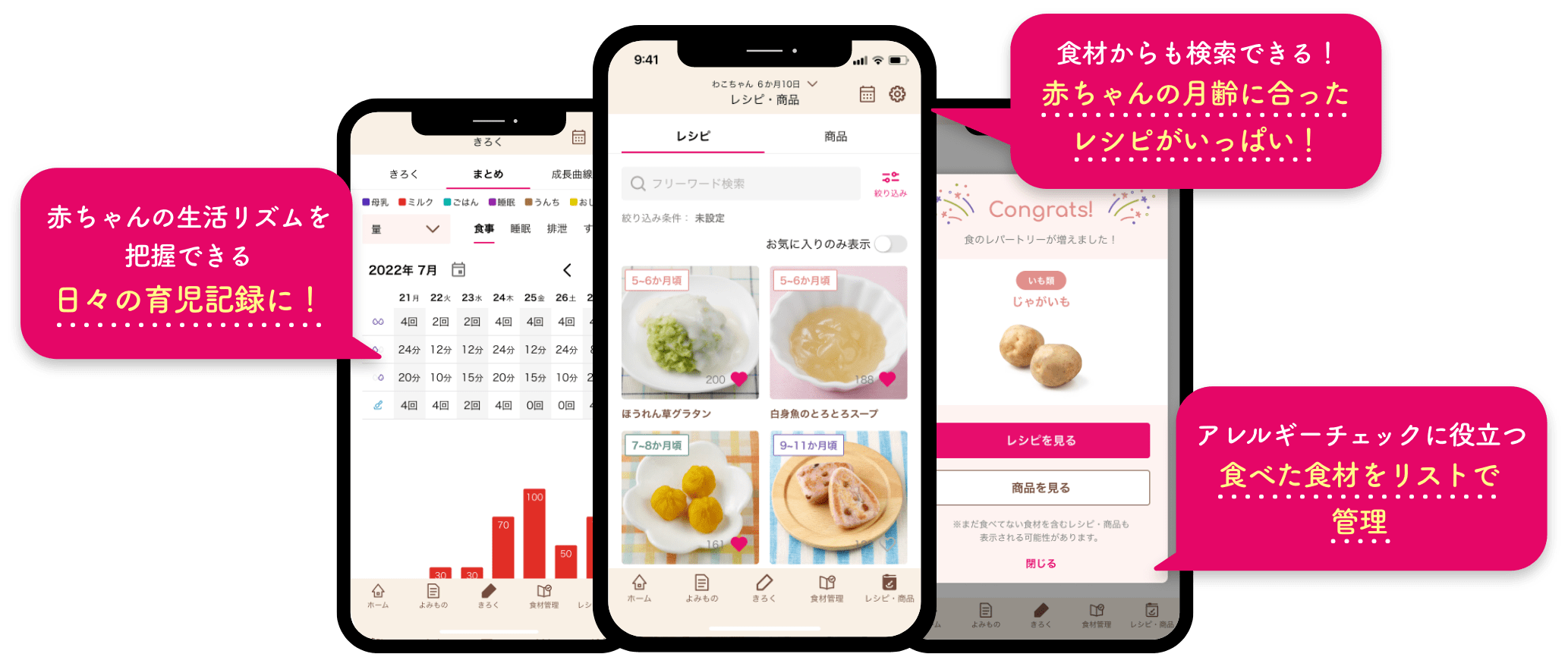 • 月齢ごとに食べて良い食材が分(fēn)かる