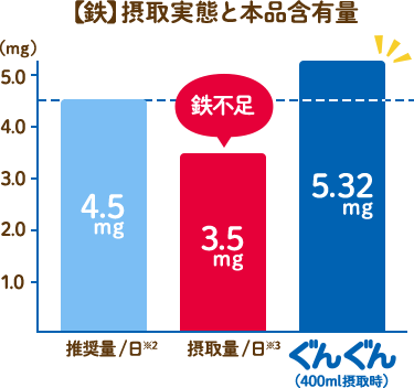 「ぐんぐん」は、食事や牛乳では不足しがちな鉄を、100ml当たり1.33mg配合しており、