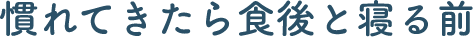 夜、寝ているときは唾液の分(fēn)泌量が少なくなり、虫歯菌が繁殖しやすくなります。毎回行うのが難しいときは、寝る前だけでもしっかりと行いましょう。