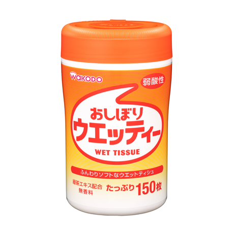 手指や身のまわりの拭き取りに、ふんわりソフトなウエットティシュです。手肌にやさしい弱酸性。無香料・緑茶エキス配合。使いやすさにこだわったストレスフリー設計。独自のおしぼりゴムが快適なウエット感を保ちます。